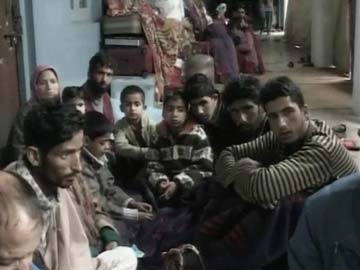 Flood evacuvees huddle around for warmth in Kashmir University