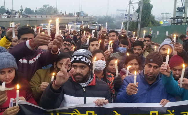 Several Kashmiri Pandit migrant employees carried out a candle march on Tuesday against the killing of six civilians by terrorists in Rajouri.