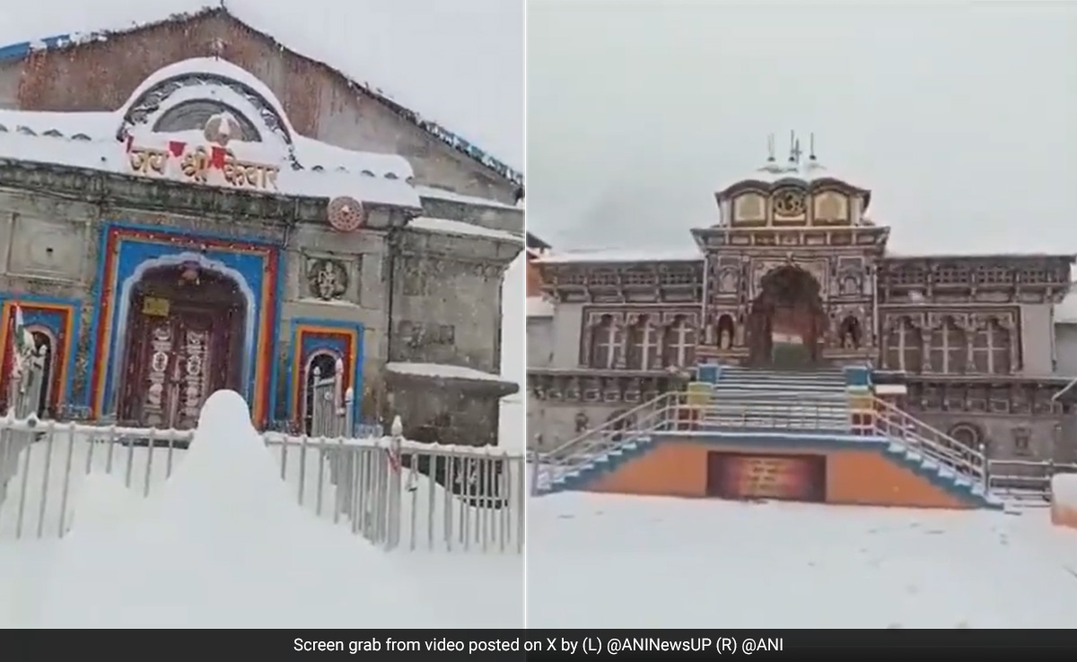 Following a sudden weather shift in Uttarakhand's high-altitude regions, the Badrinath Temple, another popular pilgrimage destination, also remains draped in snow as the region experiences snowfall.