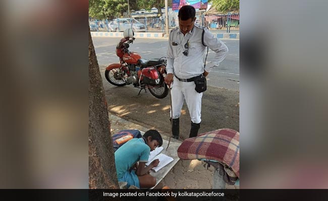 The image was later posted by the Kolkata Police on its Facebook page. The police said in an accompanying post that Mr Ghosh, who is often on duty near Ballygunge ITI in south Kolkata, started speaking to the eight-year-old's mother, who works at a food stall nearby. She told the cop that they are homeless and the child is not doing good in studies. So, Mr Ghosh took it upon himself to help the Class 3 student. The mother did everything she could to enroll her son into a government school but her dream couldn't materialise.