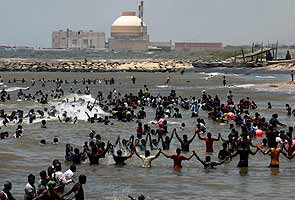 Women and men stood in the sea waters for two hours in turns, Pushparayan, leader of the Peoples Movement Against Nuclear Energy, spearheading the year-long agitation, told reporters.