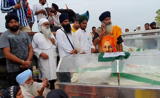 The bodies of four farmers who, according to their supporters, were run over by a car in a minister's convoy, were kept in glass cases this morning at Lakhimpur Kheri, a four-hour drive from Lucknow.