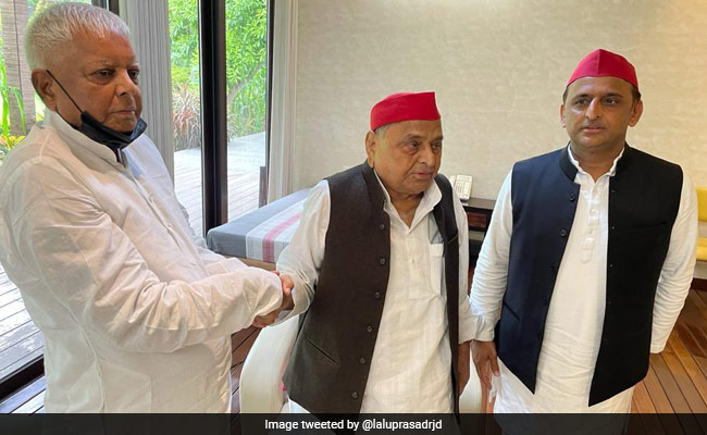 Photographs of the meeting were shared from the Twitter handles of both Akhilesh Yadav and Lalu Yadav.