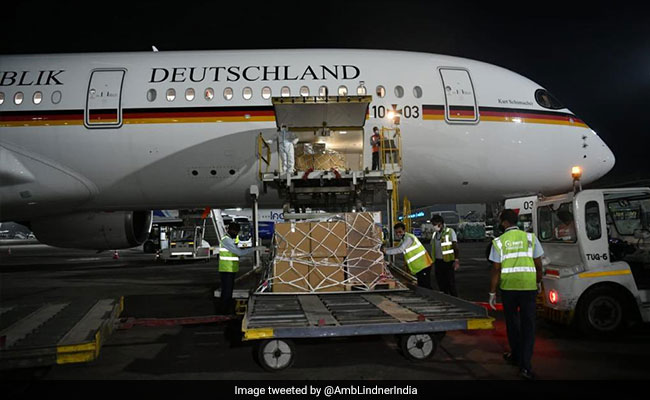 "We are here because we are bringing help that... will save lives," Germany's ambassador to India, Walter J. Lindner, said as 120 ventilators arrived late Saturday.