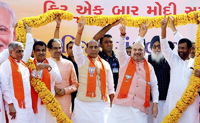 A galaxy of top leaders, including union ministers and many NDA allies, had shared stage with Mr Shah at a public meeting in Gandhinagar this morning and then held a road show through the city.