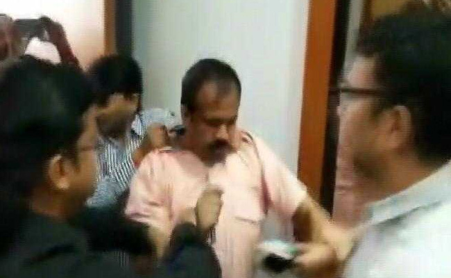 BJP spokesperson GVL Narasimha Rao dodged a shoe thrown at him when he was addressing a press conference at the party office today. The attacker, who identified himself as Shakti Bhargava, was dragged out of the media room by BJP workers after the incident, which was caught on camera.