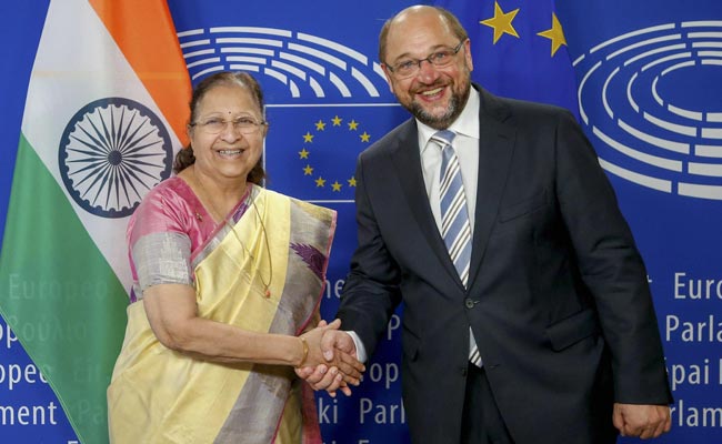 Lok Sabha Speaker Sumitra Mahajan met President of European Parliament Martin Schulz during her visit to Brussels, during which they discussed several issues of mutual interest, including the possibility of an EU-India free trade agreement.