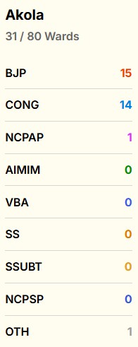 While the BJP is leading in 15 wards in Akola, the Congress is ahead in 14, show early trends at 11.05 am.