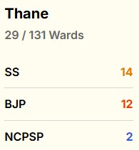 The NCP (Ajit Pawar) is leading in 33 wards, while the NCP (Sharad Pawar) is leading in just one ward. BJP, on the other hand, is leading in 86 wards.