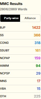 As votes were counted for elections to 29 municipal corporations across Maharashtra, the Bharatiya Janata Party emerged as the single largest force in Mumbai’s civic polls, with its alliance gaining a decisive edge.