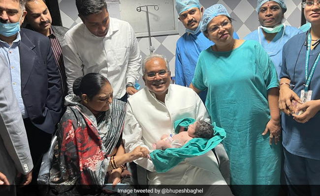 In a video shared by the official Twitter handle of Bhupesh Baghel, the chief minister is seen sitting next to his wife Mukteshwari Baghel as a hospital staff brings the newborn. The two then gaze at the infant amid applause.