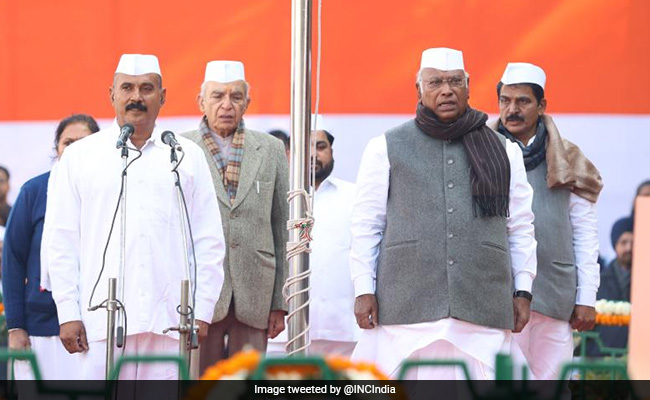 Mr Kharge hoisted the party flag at its Delhi headquarters at a gathering attended by top party leaders Sonia Gandhi and Rahul Gandhi, among others.