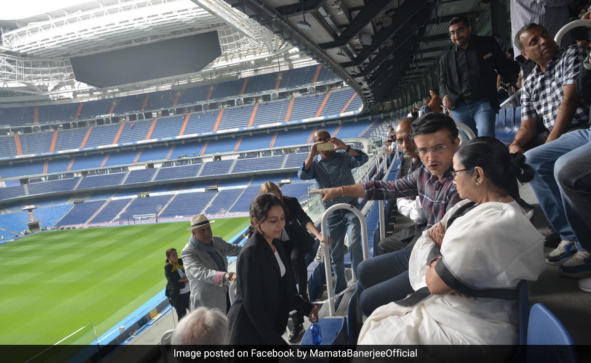 West Bengal Chief Minister Mamata Banerjee on Saturday paid a visit to the Santiago Bernabeu Stadium, a football stadium in Spain's capital Madrid, and went around it to get to know its infrastructure.