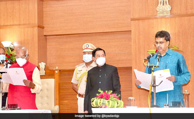 Governor SN Arya administered the oath to Mr Saha, a Rajya Sabha MP, at the Raj Bhavan.