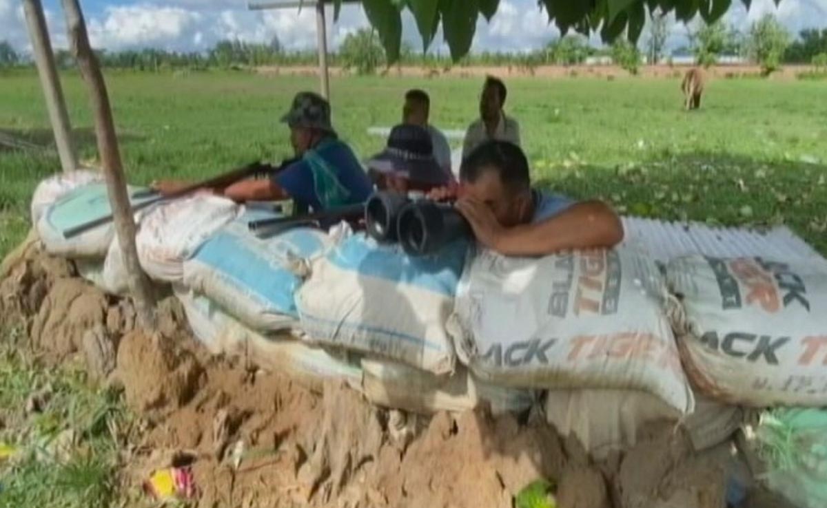 Visuals of two bunkers, one in the valley in Imphal West district and another in the foothills in Kangpokpi district a few kilometres away, show men on alert with rifles pointed out, using binoculars to scan the surrounding area for danger.