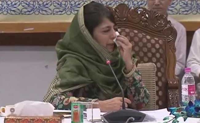 Mehbooba Mufti broke down at a meeting where she urged all parties to help resolve Kashmir crisis