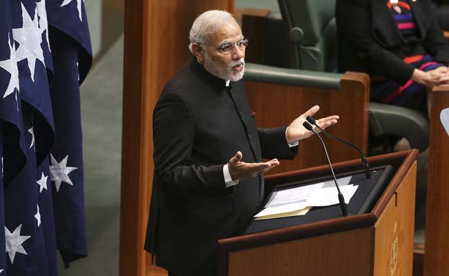 Prime Minister Narendra Modi addressing the Australian Parliament in Canberra