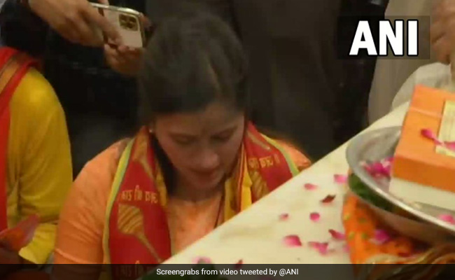 Dressed in a saffron sari and accompanied by her husband and scores of supporters, Navneet Rana, the independent Lok Sabha member from Amravati, walked on foot from her North Avenue residence to the Hanuman temple in Connaught Place to offer prayers.