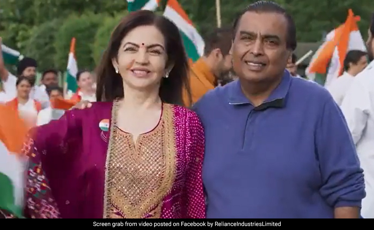 The glimpses showed Nita Ambani standing next to her husband and waving the national flag.