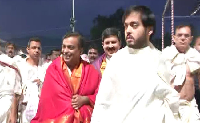 Billionaire Mukesh Ambani visited the Tirupati Tirumala temple in Andhra Pradesh this morning to place daughter Isha Ambani's wedding invitation before Lord Balaji.