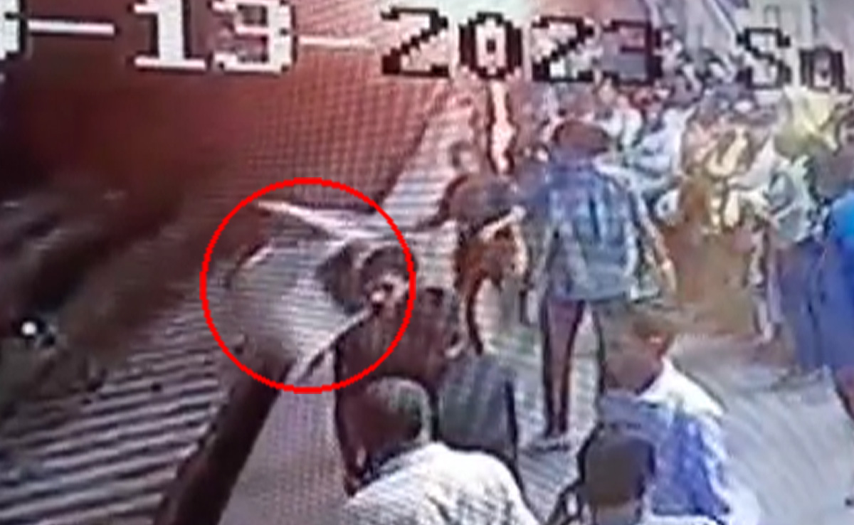 A crowd assembles. As the train approaches, the people get back, the victim desperately tries to climb up but gets brutally crushed under the train, the horrific video showed further.