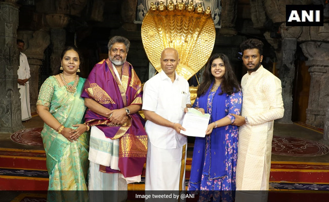 The couple donated furniture and utensils worth Rs 87 lakh for the newly constructed Padmavathi Rest House in Tirumala. In addition, they also handed out a demand draft for Rs 15 lakh to the SV Anna Prasadam Trust, the agency added.