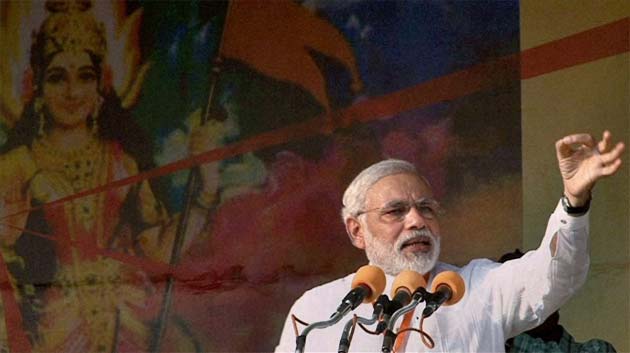 Narendra Modi at his rally in Kanpur (PTI photo)