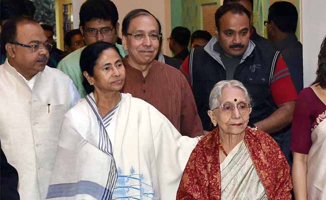 West Bengal Chief Minister Mamata Banerjee with Krishna Bose at Netaji Bhawan in Kolkata on Friday, January 15, 2016. (Press Trust of India photo)