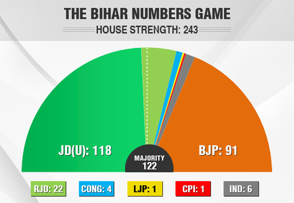 Mr Kumar's own party, the Janata Dal United or JD(U), has 118 legislators; it needs just four more votes to win the vote. (Live Blog)