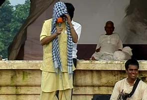 Ms Bedi then proceeded to pull a scarf from the neck of a young activist on stage, wrapped it over her head like a 'ghunghat' (veil) and proceeded to mock MPs and their "double-faced utterances".