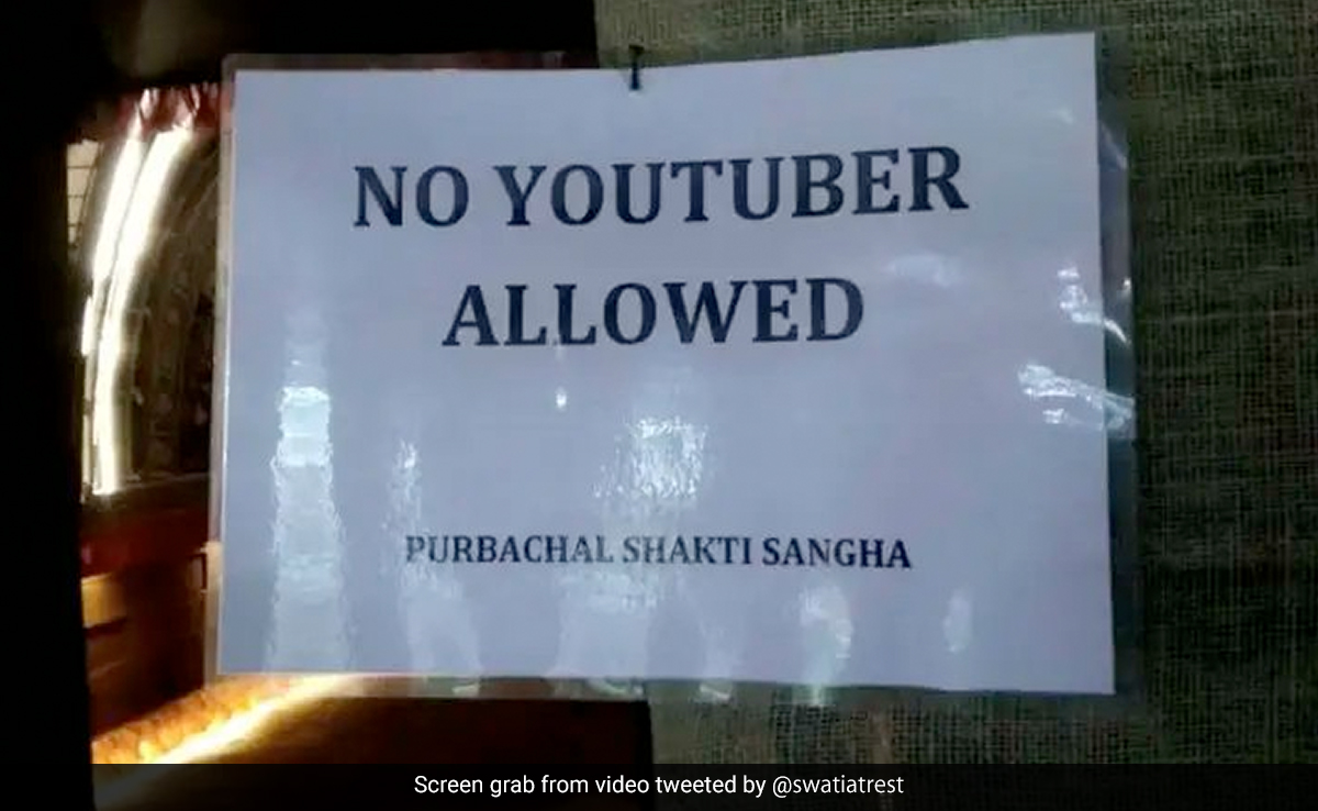 However, one pandal in Kolkata, Purbachal Shakti Sangha, isn't going to entertain YouTubers. A message outside the pandal reads, "No YouTuber allowed."