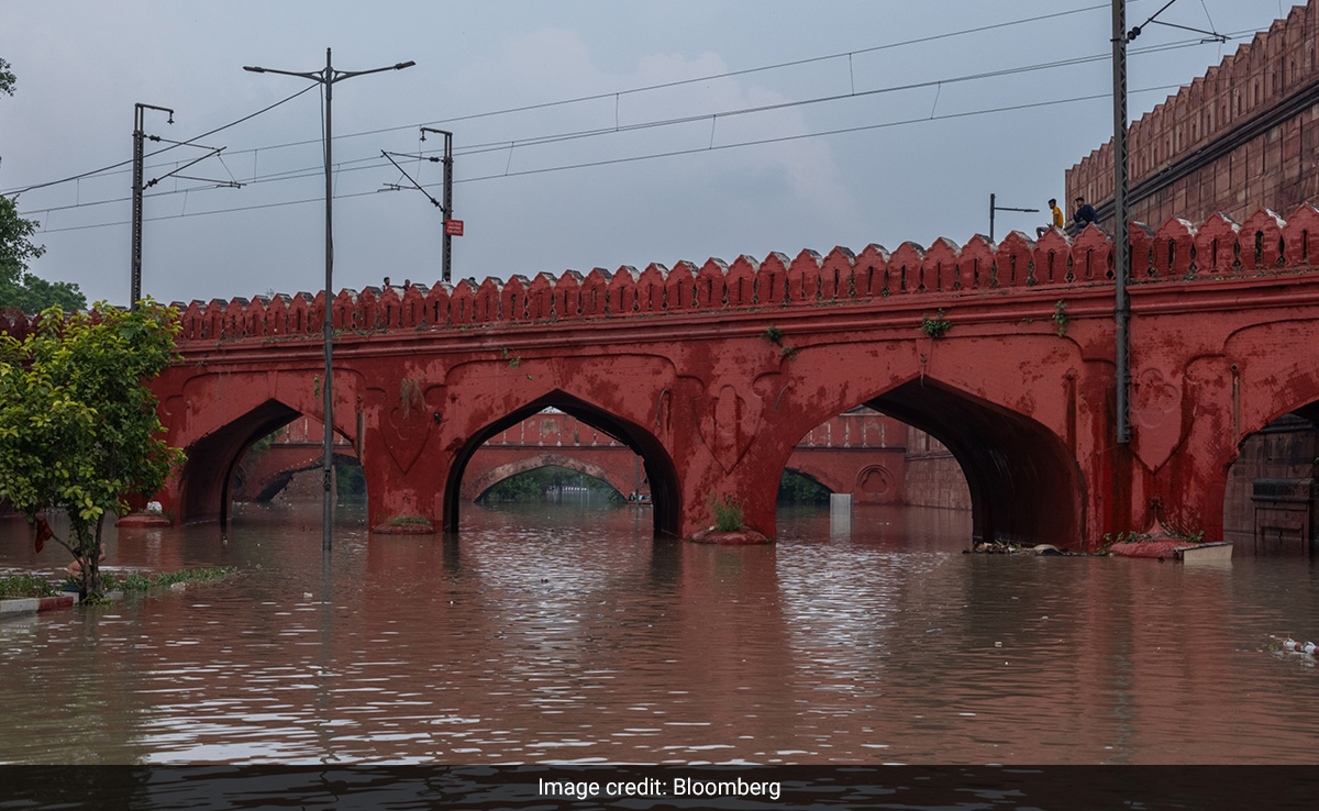 Residents wade through the flood waters in New Delhi on July 14.