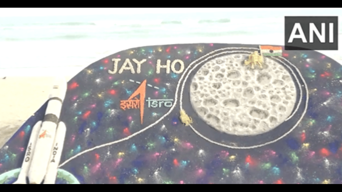 As Chandrayaan-3 is all set to create history by landing on the uncharted south pole of the Moon today, the team of sand artist Sudarsan Pattnaik extends best wishes with his latest artwork.