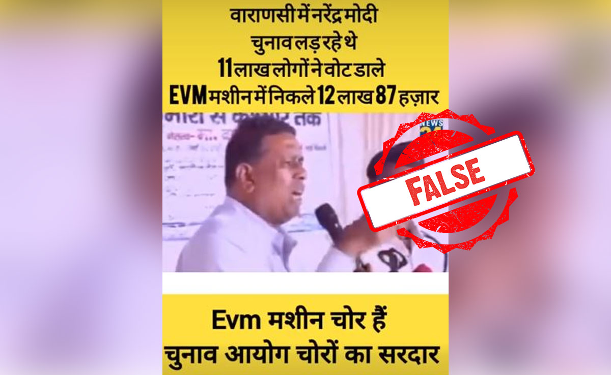 "In Varanasi, Narendra Modi was contesting the election. 11 lakh people voted, but 12 lakh 87 thousand votes came out from the EVM machine. The EVM machine is a thief, and the Election Commission is the leader of the thieves," the caption in the video claimed.