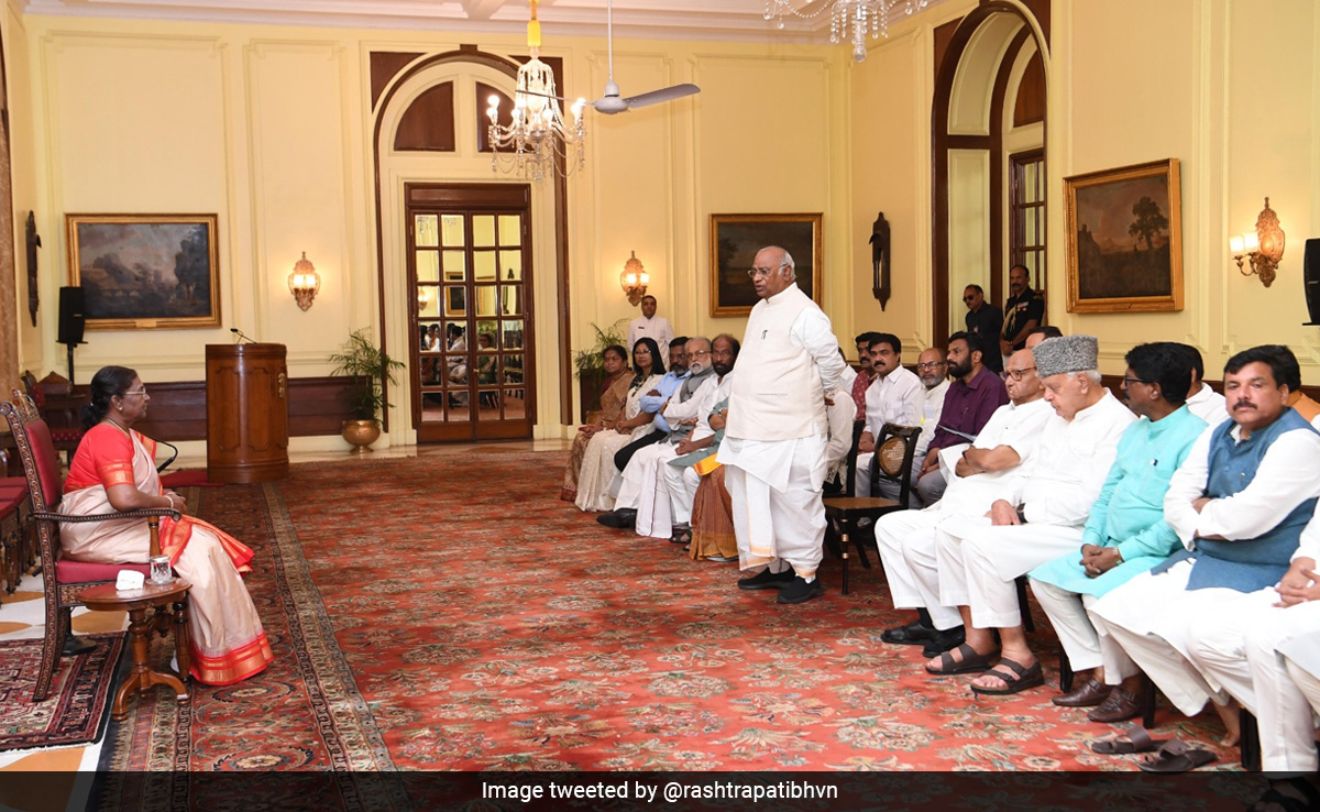 Mr Kharge along with other opposition leaders told reporters outside Rashtrapati Bhawan that 31 members of the alliance met the President and apprised her of the developments in Manipur.