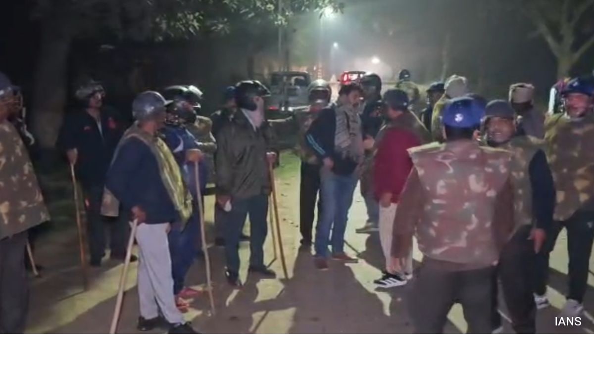 According to sources, tensions flared near Raja Ram Hostel after a vehicle allegedly hit a female student.