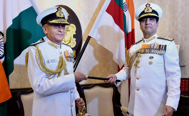 Indian Navy Chief Admiral Sunil Lanba (left) was speaking at an event in Goa (file)