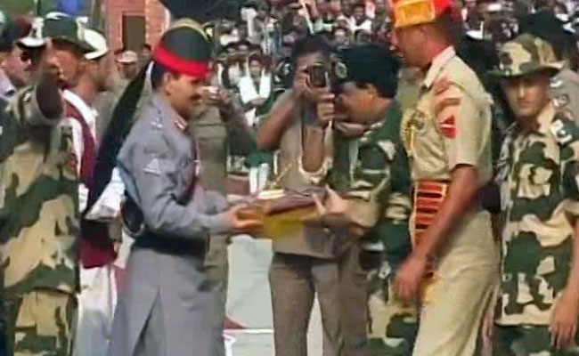 - India and Pakistan soldiers exchange sweets at Atari-Wagah border