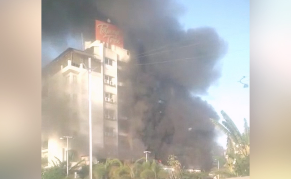 Videos of the fire that surfaced on social media show people trapped on the sixth floor tying bedsheets and throwing them down like ropes in an effort to climb down. Smoke from the fire is visible from several kilometres away. Several fire tenders and municipal tankers are present at the hotel to aid the rescue efforts.
