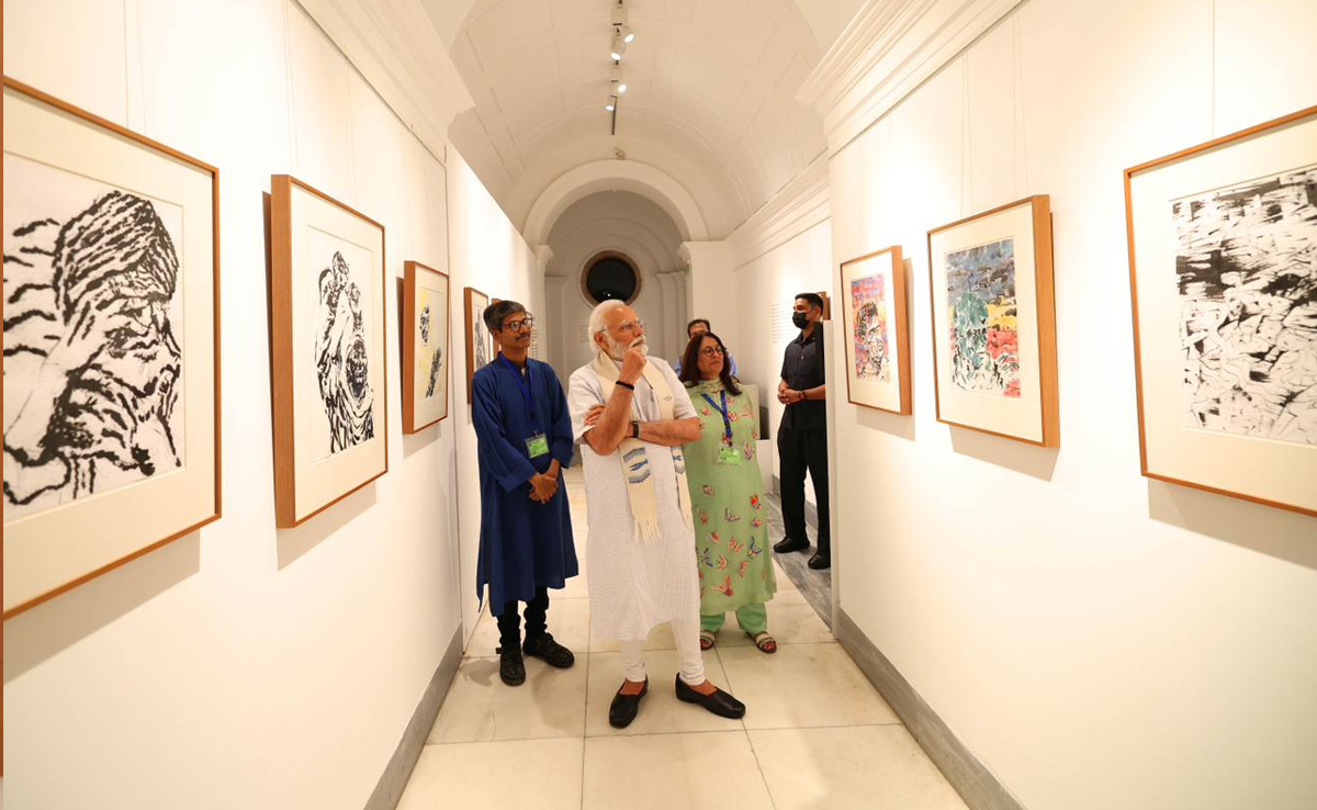 The exhibition celebrates the artistic diversity of India and is inspired by the themes highlighted in his 'Mann ki Baat' programme over the years.
