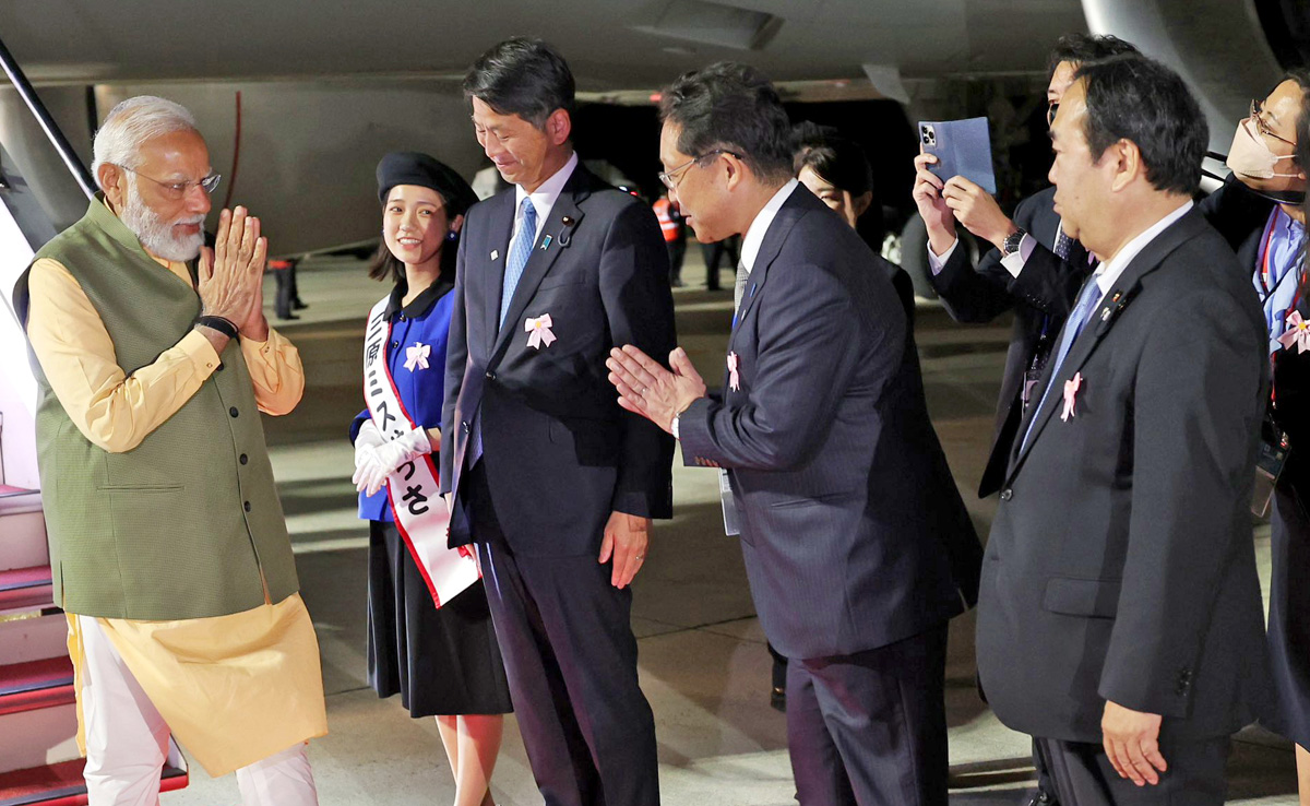 Prime Minister Narendra Modi arrived here in the Japanese city on Friday to attend the annual summit of the G7 grouping and the third in-person Quad leaders' meeting during which he will exchange views with world leaders on global challenges and discuss ways to collectively address them.