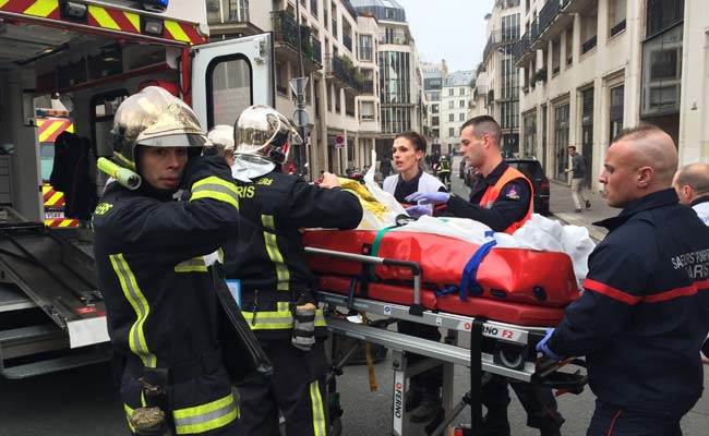 A victim of the shooting is taken away by paramedics. (Photo: Agence France Presse)