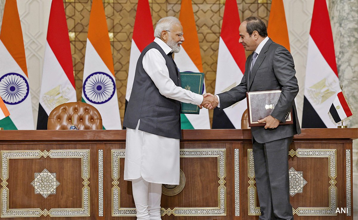 The two sides signed an agreement to elevate the bilateral partnership to a "strategic partnership." In addition, three Memorandum of Understanding (MoU) in the fields of agriculture, archaeology and antiquities and competition law were also signed between India and Egypt.