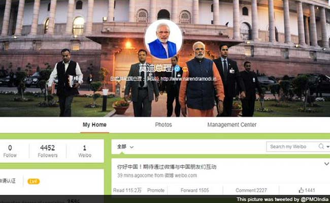 The prime minister is the first Indian leader to join Weibo, which has accounts of politicians like British Prime Minister David Cameron.