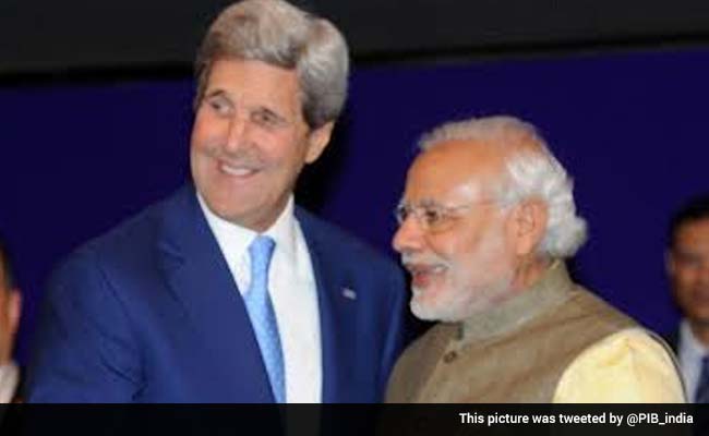 Prime Minister Narendra Modi and US Secretary of State John Kerry at the Vibrant Gujarat Summit in Gandhinagar