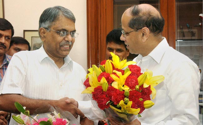 New Cabinet Secretary Pradeep Kumar Sinha (left) takes charge from his predecessor Ajit Seth. (Press Trust of India)