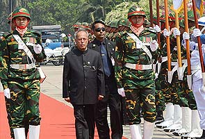 President Mukherjee, on arrival, was received by Bangladesh President Mohammad Zillur Rahman and senior ministers of Sheikh Hasina's cabinet. He was given a ceremonial reception at the airport, including a 21-gun salute, after which he inspected the guard of honour by the three services of Bangladesh defence forces.
