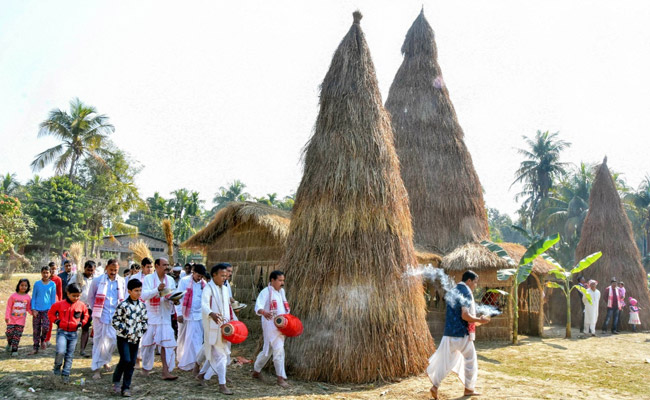 Assam is celebrating the Magh Bihu, its harvest festival, today. People across the state busied themselves with lighting the meji -- bonfires fed with bamboo, leaves and thatch -- to seek the blessings of the gods right from dawn like they have been doing in ages past. Last night, they had participated in the uruka, a community feast with fish predominantly on its menu.