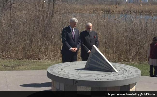 Mr Modi, along with Mr Harper, visited the Kanishka memorial site in Humber Bay Park as his final stop in Toronto before heading west to Vancouver.