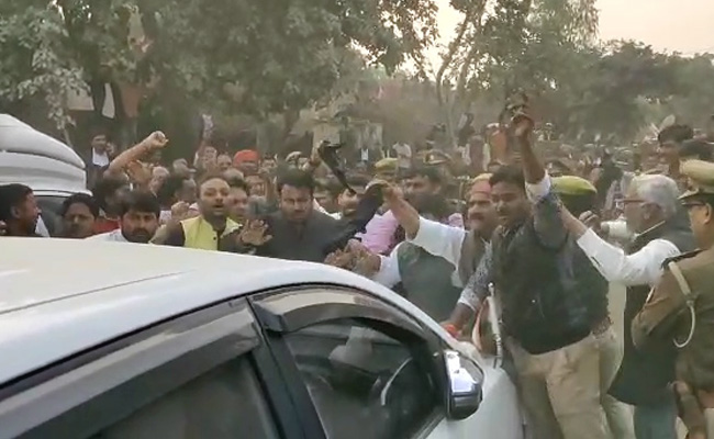 There were massive protests by angry locals and Congress workers at a village in Unnao as two ministers from the Yogi Adityanath government arrived this evening to visit the family of a 23-year-old woman, who died last night after being set on fire by the men accused of raping her.